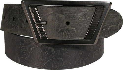 - 1. 5" - Wax Pull Up Leather - Logo Buckle - Embossed Strap - All Over Print.